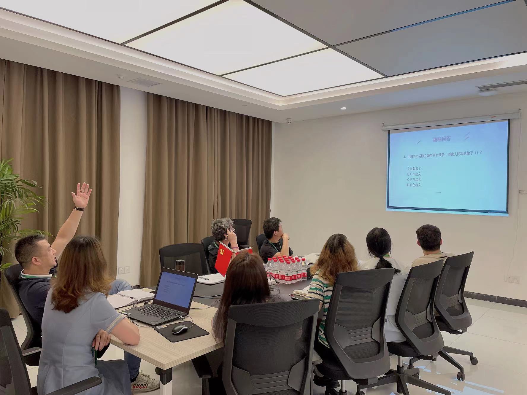 通過轉(zhuǎn)正預(yù)備黨員儀式、學(xué)習(xí)黨史(包含七一建黨節(jié)的由來歷程等)、互動(dòng)活動(dòng)、電影《黑狐之絕地營救》賞析等環(huán)節(jié)深切祝福黨的101周年華誕,展現(xiàn)宇諾始終堅(jiān)持以高質(zhì)量黨建引領(lǐng)高質(zhì)量發(fā)展的澎湃活力,更好地激勵(lì)黨員干部奮發(fā)努力、勇毅前行,以實(shí)際行動(dòng)迎接黨的二十大勝利召開。